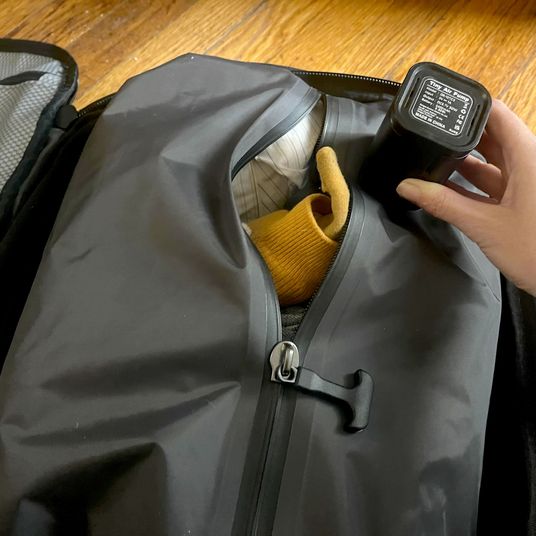 The Cotopaxi Allpa is truly a backpack for suitcase people. Its clamshell design unzips fully to reveal a large mesh compartment on the right-hand side and two smaller ones on the left, mimicking the layout of rolling luggage. It has a hidden laptop sleeve in the back that’s generously padded (I once checked my Allpa with a MacBook inside and the laptop survived unscathed), as well as an easy-access storage compartment on top that can fit snacks, a book, and your passport. The bag is comfortable to carry, with a sternum strap and removable waist belt for extra support. It comes in three different sizes, but this 35-liter version will be the best for most people — it’s big enough for a week’s worth of clothes but small enough that you can use it as an airline personal item or large daypack. (Strategist contributing writer Margaret Eby took one on a flight to Italy in addition to a rolling suitcase, and says the tuckaway straps helped her squish it under the seat in front of her.) The brand just released an updated version of the bag with an external water-bottle holder, which I’m very pleased about. But the older version is still available to purchase on Amazon for $25 cheaper, and it’s overall very similar.