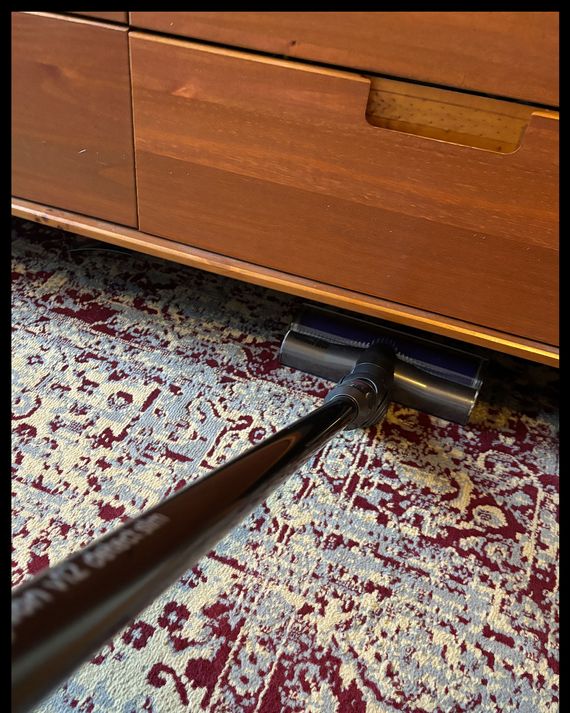 Another perk: The Stratos’s stick body has a hinge that allows the vacuum to bend in half, which enabled me to flatten the brush head to roll under places in my apartment with low clearance without resorting to power squats or awkward bending.