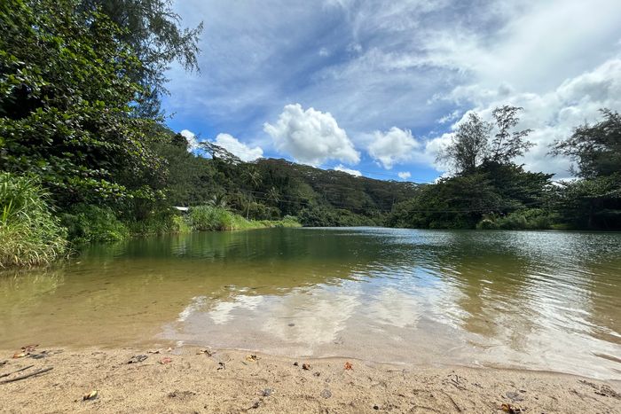 After a reef swim at Pu’u Poa, the public beach attached to 1 Hotel, we got back in the Rubicon. Our first stop was Anini, which we saw signs for as we drove towards Kilauea, a town on the northeast coast; it’s a pretty white sand beach protected by Hawaii’s largest coral reef. After that, we stopped at Kalihiwai Beach, which was recommended by one of our kayak guides — it was practically empty and had a calm, cool river leading to the sea that was good for swimming.