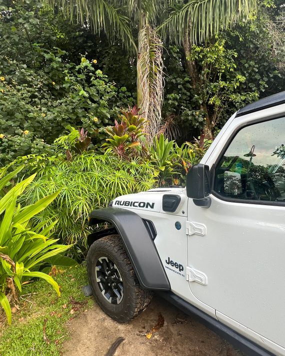 There’s no offroading in Kauai but remote beach roads can get bumpy, and the main road that hugs the coastline can flood. We got a Rubicon because it has a removable roof, so you feel like you’re in Jurassic Park (which was filmed in Kauai). We started the beautiful coastal drive up the east side of the island.