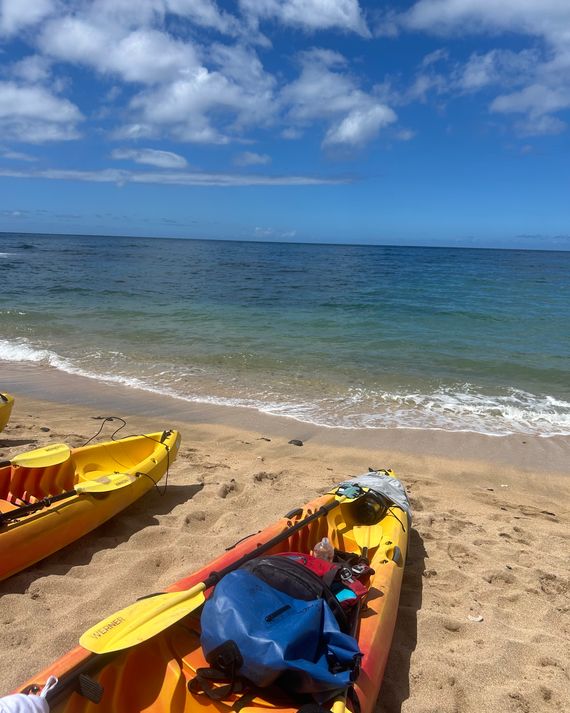 After pounding oatmeal and Dramamine for breakfast we drove to Napali Kayak in Hanalei where we met up with the rest of the team and our guides. I found three or four companies that offered day trips up the coast, but I picked Napali Kayak for its excellent reviews on Tripadvisor and Google, and the fact that their coastal day trip was one of a handful of their offerings. (In comparison to other services, which had dozens of tours to choose from. I figured Napali went for quality over quantity, and I was right.)